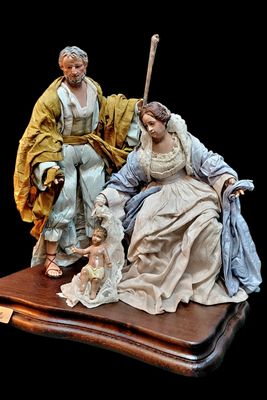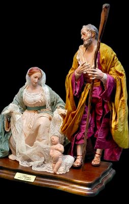 Le nostre creazioni sono create tutte artigianalmente. Ogni singolo pastore è dipinto nel pieno rispetto delle tecniche tradizionali del '700 napoletano, così come i vestiti, in stoffa di seta o cotone sono interamente cuciti a mano singolarmente.
